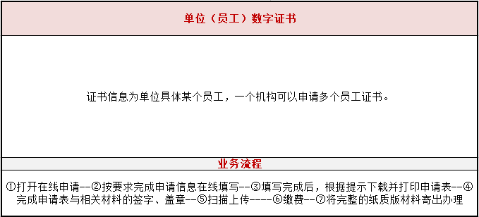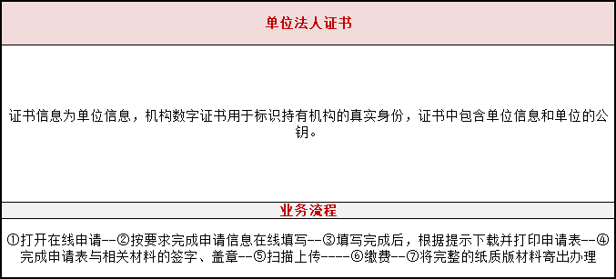 注:用戶可辦理一張或多張單位法人數字證書,也可辦理一張或多張單位員工數字證書。每個用戶需先申請單位法人證書,用于標識機關單位真實身份,后才能申請單位員工證書。單位法人證書和單位員工證書具備相同的網辦系統操作權限。