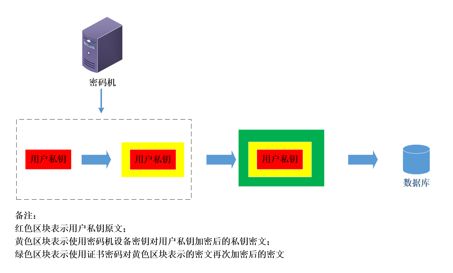 采用“用戶私鑰-加密機加密-口令加密”的多重密鑰保護結構,充分保證用戶密鑰及應用系統的安全性。