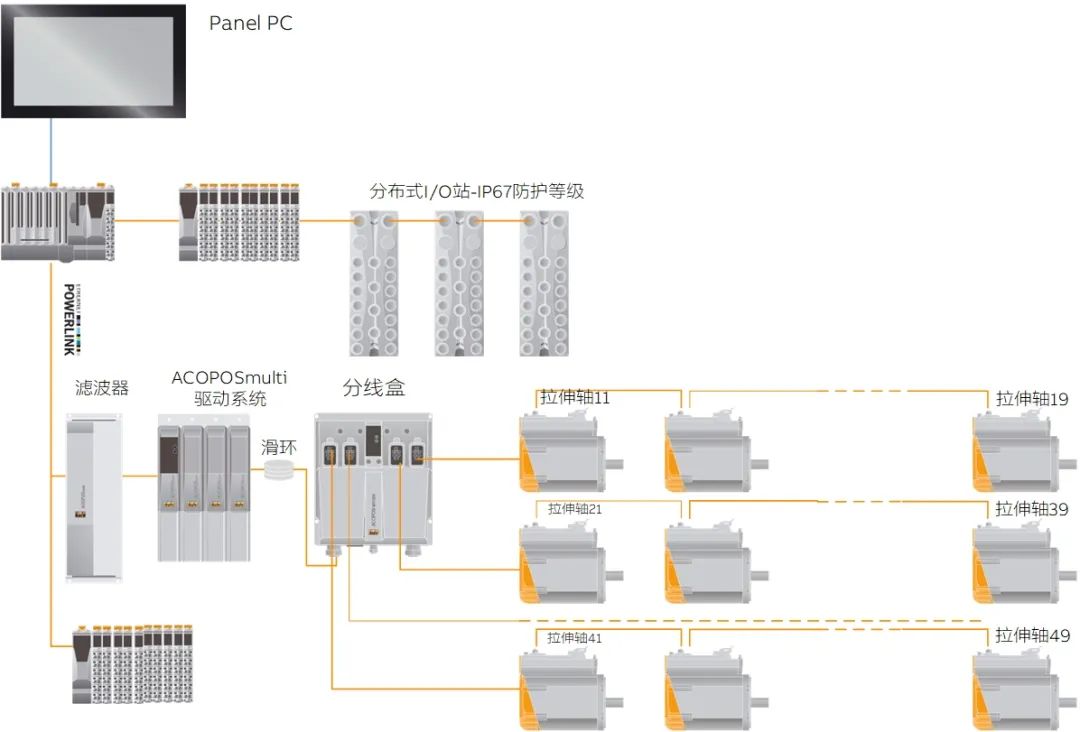 在更為高速,例如達(dá)到72,000瓶乃至108,000以上的機器中,還可以采用響應(yīng)速度更高的直線電機來進(jìn)行伺服拉伸動作,而貝加萊的ACOPOSremote模塊可以直接驅(qū)動第三方的直線電機,來獲得更高性能的機器控制。