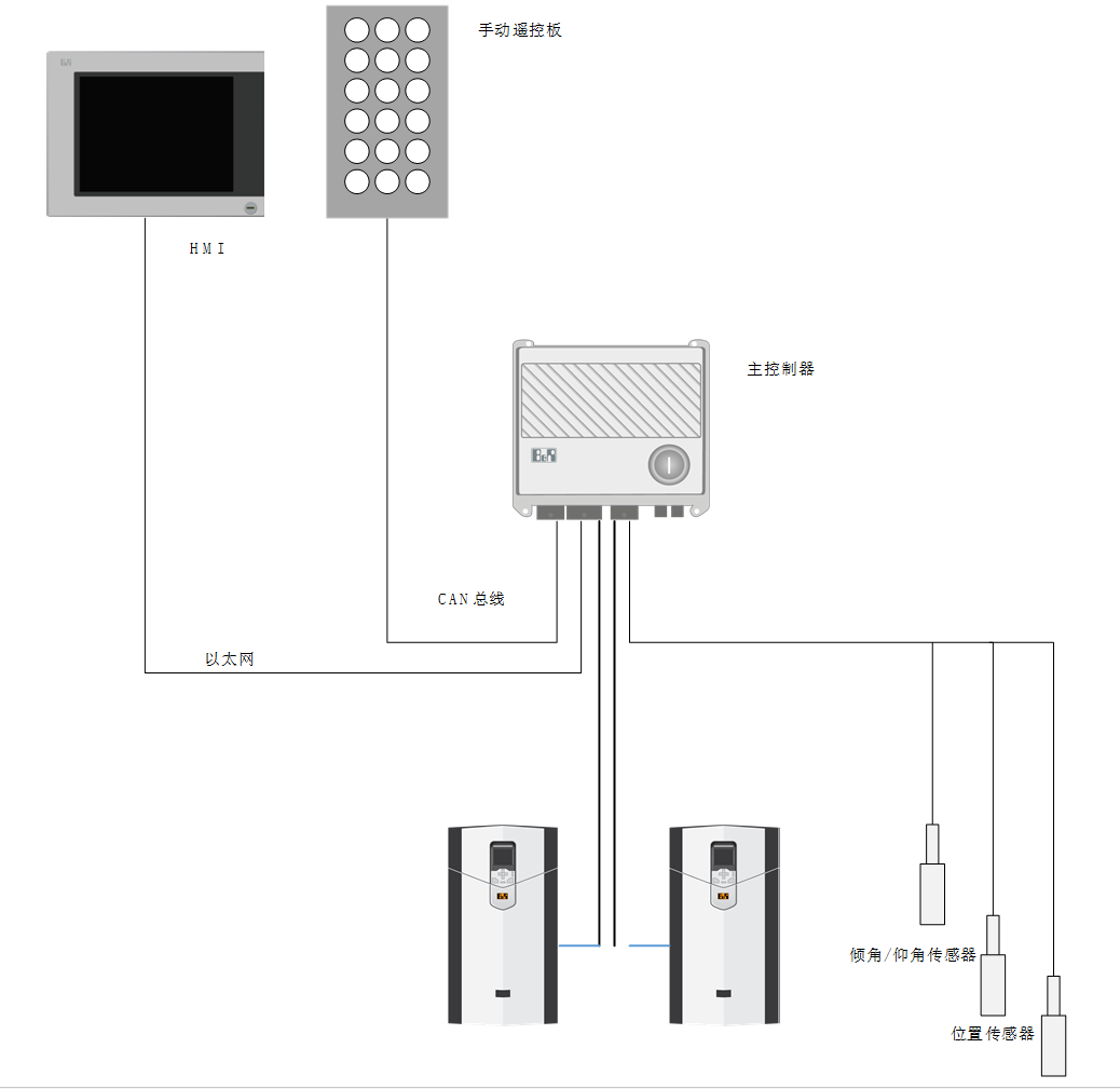 控制系統(tǒng)采用分布式CAN總線架構(gòu),包括:接觸器控制、變頻器控制、傳感中心監(jiān)測、數(shù)據(jù)遠(yuǎn)程通訊、遙控接收等多條CAN總線,這些都需要應(yīng)用豐富的CAN接口,X90標(biāo)配了4個(gè)CAN接口,以及標(biāo)準(zhǔn)以太網(wǎng)和USB口。各接口可根據(jù)需要進(jìn)行便捷的擴(kuò)展。